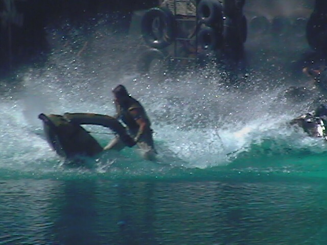 On one of the days I took off to LA to meet with a friend and we went out to Universal Studios. I had been there previously before and going through the same rides that I had done before (like the Studio Tour) was not as exciting even though there were slight changes. The Terminator 3D attraction which I hadn't seen before was amazing! The main purpose of this little travelogue is to show some of the cooler scenes from the Water World stunt spectacular, which is all the more cool and amazing because it's done on water: