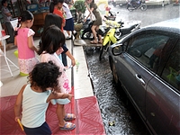 As usual, there were some unique oddities I came across this time in Thailand that I've never even considered (one of the previous best was a guy opportunistically (and merrily) washing motorcyles in the torrential rain which had flooded the main roads with a foot of water). This time it was using compact discs (CDs) as reflectors for various purposes: on food stands to attract/keep away insects; on backs of vehicles as reflectors; and on backs of elephants are reflectors! Only in Thailand.